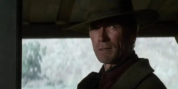 Clint Eastwood i rollen som William Munny vid förolämpningsdörren.