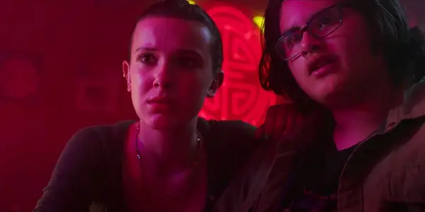 Millie Bobby Brown med en vän i Godzilla mot Kong